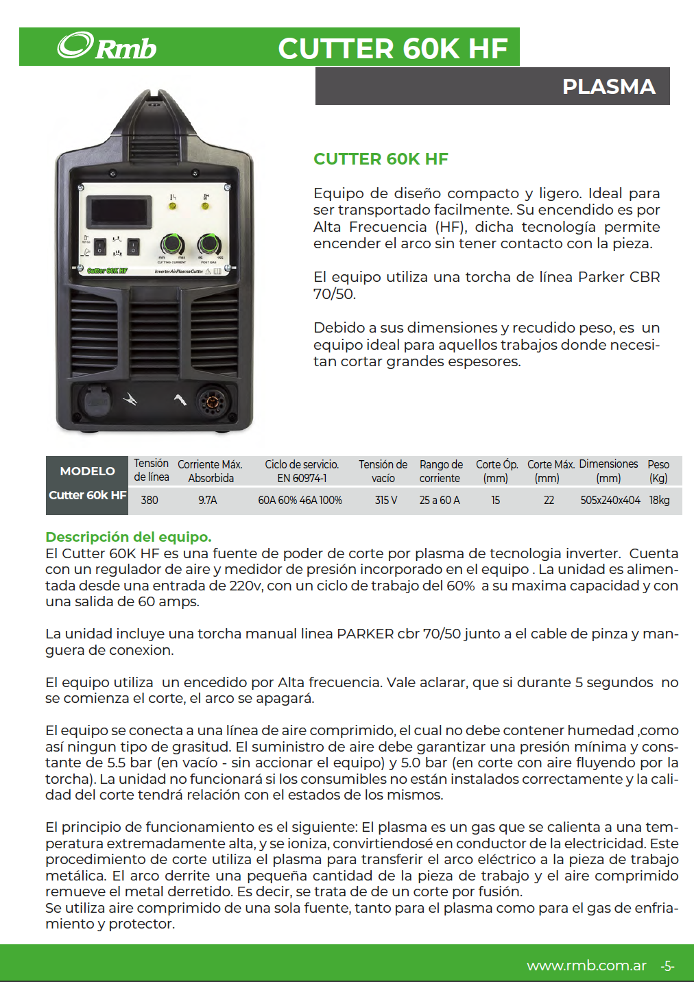 Es un equipo recomendado para trabajos que requieren cortar grandes espesores con precisión y eficiencia.